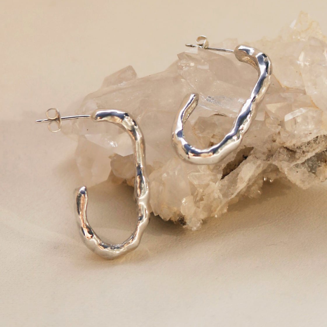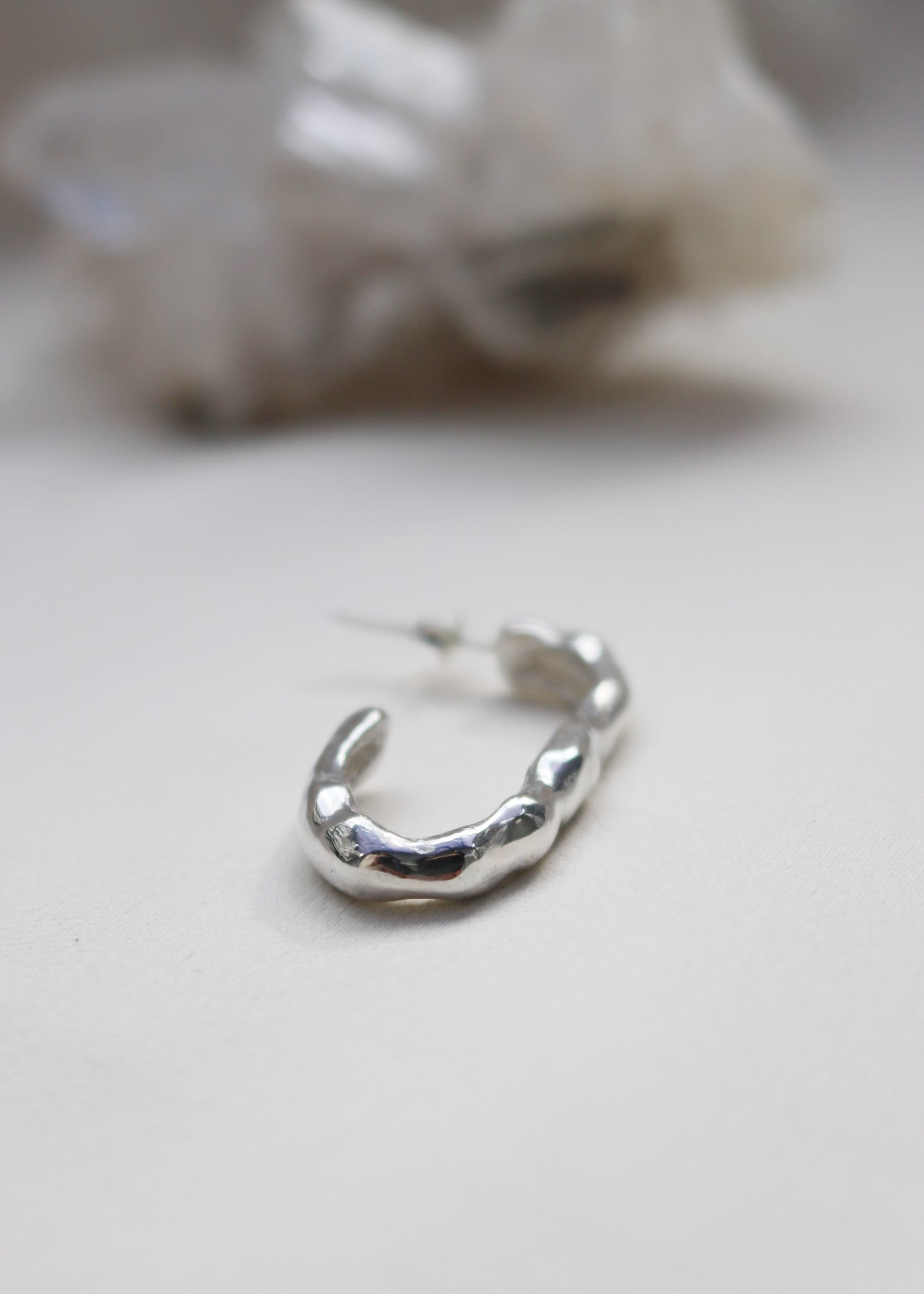表面はすっきりとさせすぎず、シルバーながらナチュラルな質感を感じさせるデザインが印象的なアクセサリーです。